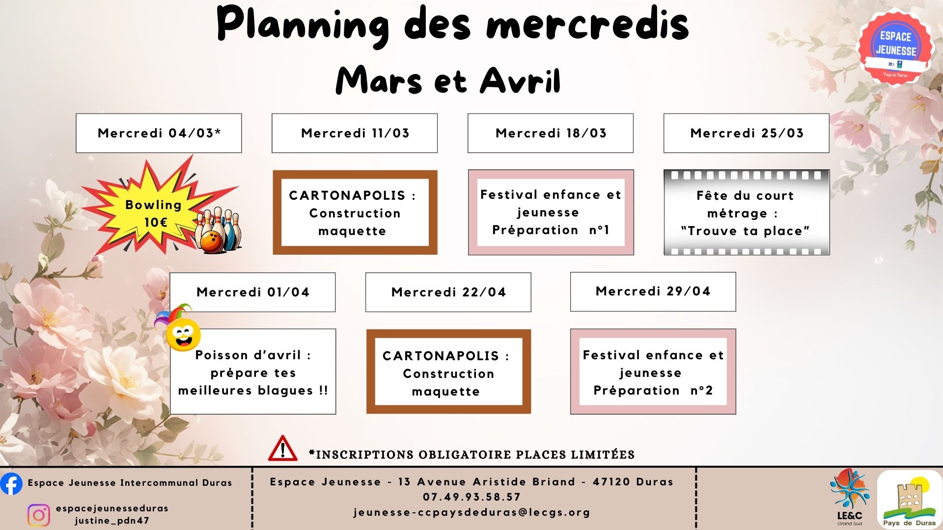 Possibilité d’adaptation des horaires en fonction des projets (Séjours, sorties à la journée... )