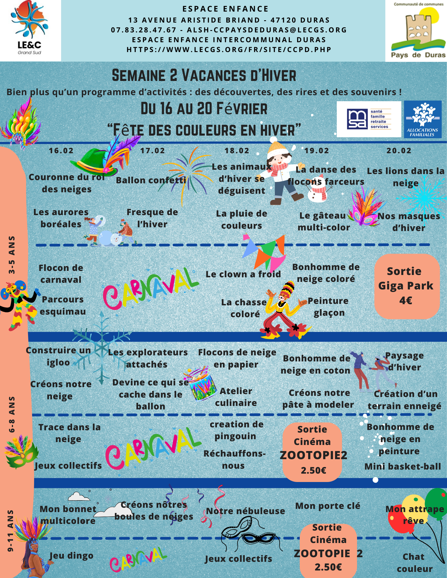 Télécharger le programme des vacances de février 2026 et le bulletin d'inscription